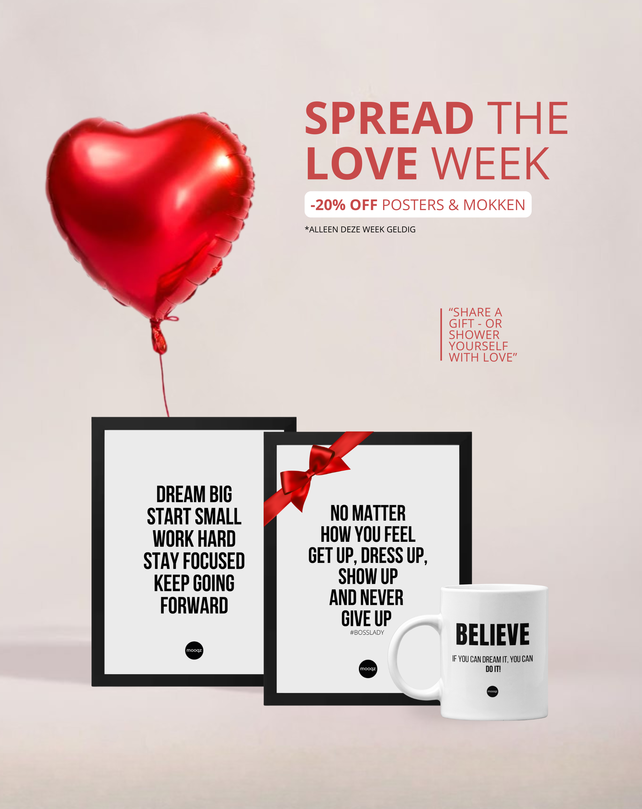 Ontdek onze statement posters en mokken. Perfect om te geven of als reminder voor jezelf. Selflove is key.